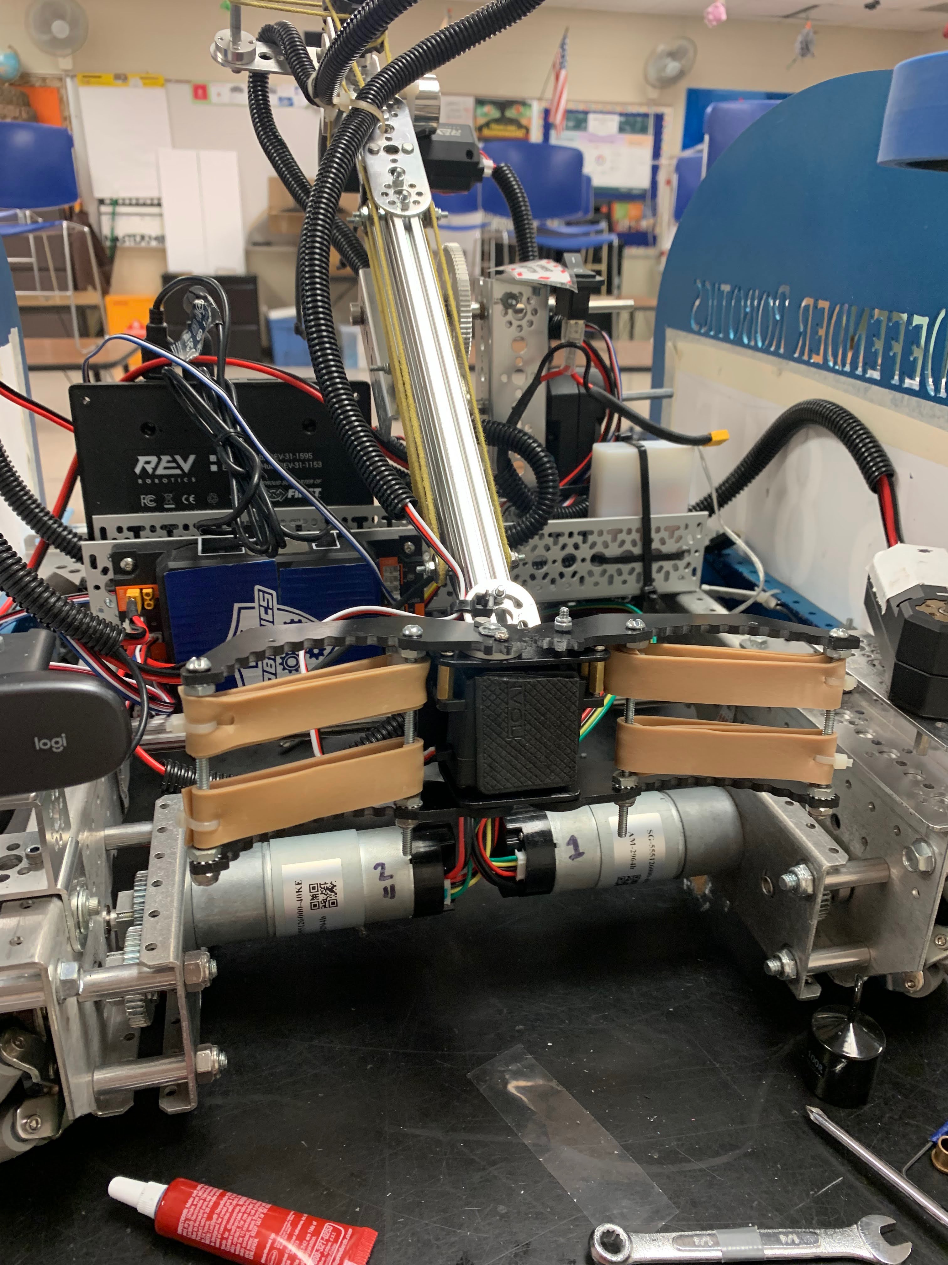 Extension | linear slide with string pulley system, powered by a REV Core Hex motor |